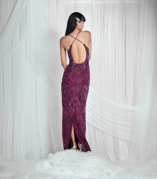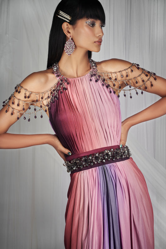 Best SellerDusk Pink Shaded Printed Draped Gown